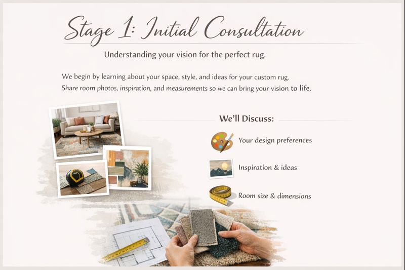 We start by understanding exactly what you’re looking for — your space, your style, and any ideas or inspirations you have for your custom rug. You can share room photos, size measurements, or even mood boards so we can clearly visualize your dream rug.